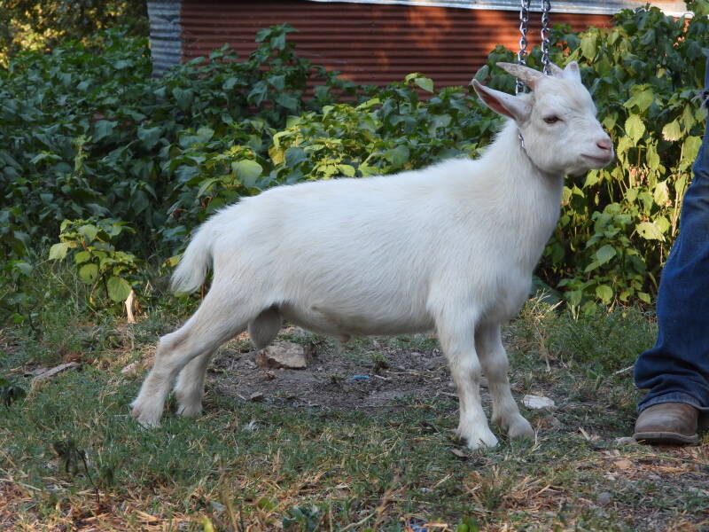 We brought in Dusty with hopes that he would pass down 'large hand milking teats' to our small Nigerian herd. His dam, Angeldust, has nice sized teats, and is a pretty nice doe. His first daughters should hit the ground April 2025. He is also line bred on his dam, Angeldust.